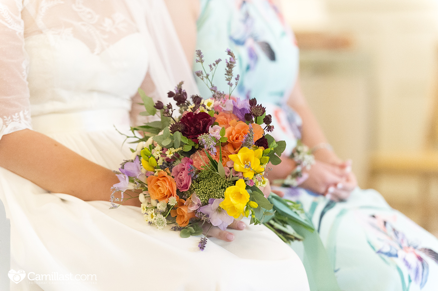 Dagen min startet i Varteig kirke i Sarpsborg, hvor vielsen fant sted. Her ankom jeg en halvtime før det hele var i gang, for å dokumentere litt stemning, gjester som ankommer og selvsagt ta i mot den nydelige bruden, Andrea.