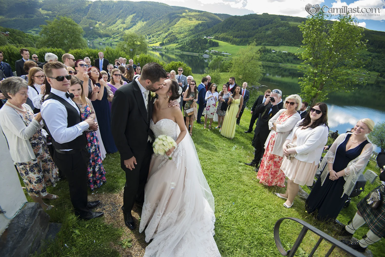 En fantastisk flott sommerdag i juni 2015 fikk jeg æren av å bli med til Valdres hvor Lena og Thomas viet seg i den gamle Ulnes Kyrkje fra år 1250. Det er så fint når vielsen gjøres i slike gamle bygg med så mye historie i, synes jeg da. Omgivelsene er helt idylliske og været var jo helt perfekt også.